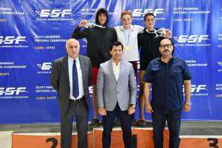 وزير الشباب والرياضة المصري ونظيره الفلسطيني يشهدان بطولة الجمهورية للسباحة