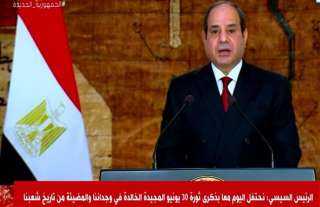 الرئيس السيسي: مصر استعادت هويتها الوطنية بـ ثورة 30 يونيو