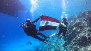 غواصون يرفعون علم مصر تحت الماء ..احتفالا بـ30 يونيو