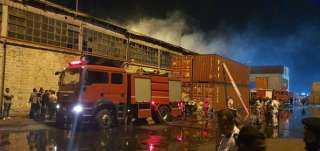 "القوى العاملة" تتابع حريق مخزن شركة تداول الحاويات والبضائع في بورسعيد..