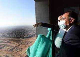 وصعد رئيس الوزراء إلى أعلى نقطة بالبرج الأيقوني، التي تتيح رؤية شاملة للإطلاع على أعمال تنفيذ الواجهات والهياكل الخرسانية بمنطقة المال والأعمال، حيث تعرف على موقف تنفيذ هذا البرج المميز وباقي الأبراج في المنطقة، كما صعد إلى أحد الأبراج التي يتم تنفيذها بالمنطقة، لمتابعة أعمال التشطيب التي تتم من الداخل، مؤكدًأ على أهمية أن يتم التنفيذ وفق الجودة المطلوبة والبرنامج الزمني المحدد.