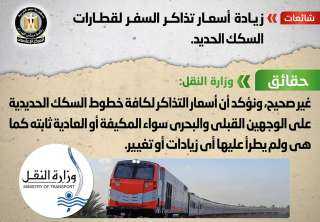 الحكومة تنفى شائعة: زيادة أسعار تذاكر السفر لقطارات السكك الحديد