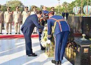 الرئيس السيسى يضع أكاليل الزهور على قبر الجندى المجهول وجمال عبد الناصر والسادات