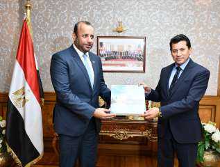 وزير الرياضة يطمئن علي استعدادات الصالة المغطاة ببرج العرب