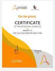 فرست جلف سوليوشنز تحصل على شهادة التميز في الخدمات الاحترافية من اتوميشن اني وير العالمية Automation Anyhwere