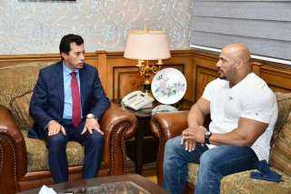 وزير الرياضة يستقبل بيج رامي الفائز للمرة الثانية على التوالي بلقب مستر أولمبيا