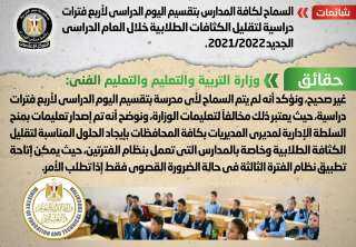 الحكومة تنفى تقسيم اليوم الدراسى لأربع فترات لتقليل الكثافات الطلابية