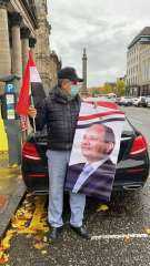 بعلم مصر ولافتات الترحيب.. الجالية المصرية تستقبل الرئيس السيسى فى ”أدنبرة”