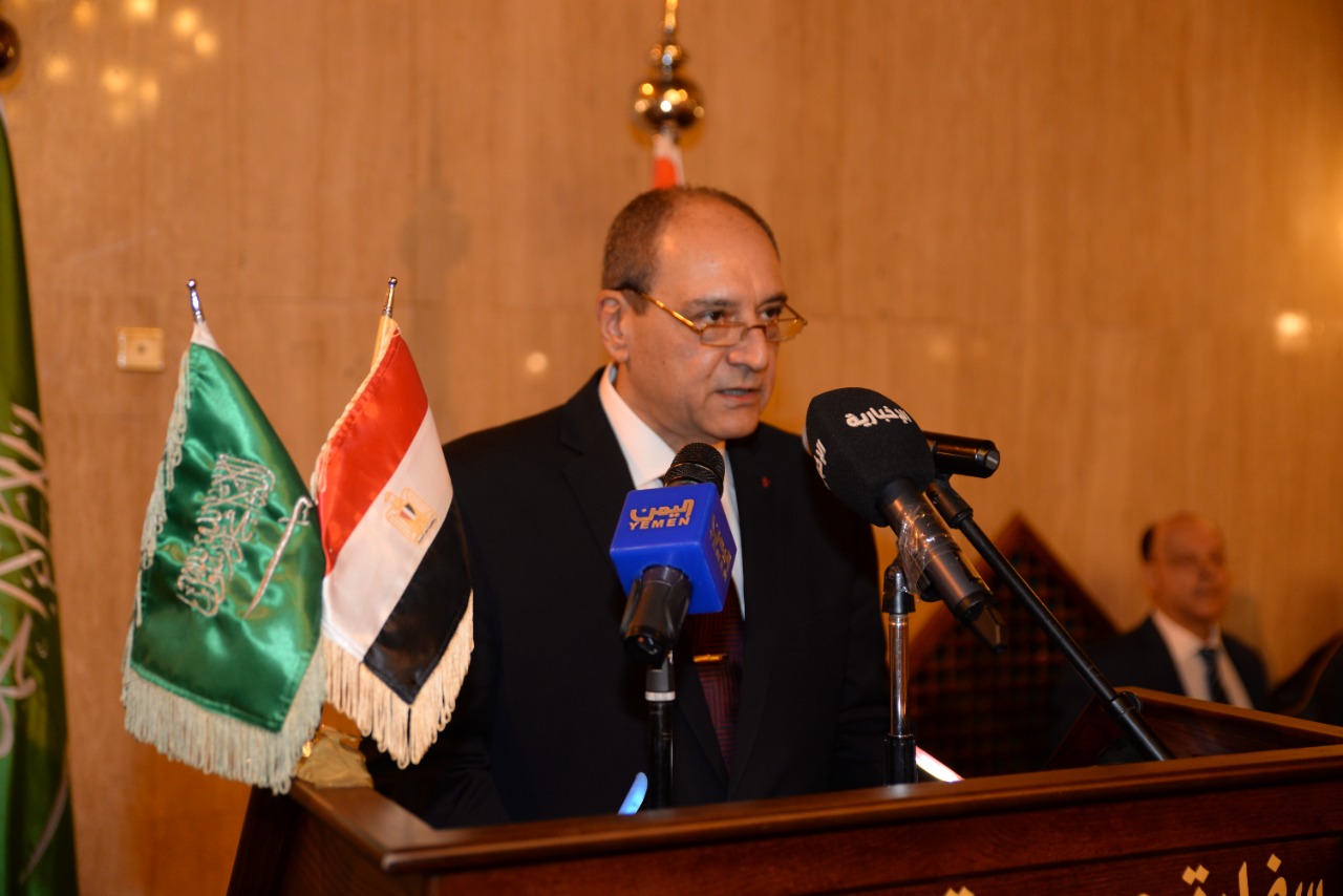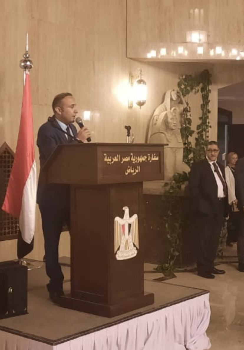 وافتتح الحفل الكريم معالي السفير /احمد فاروق سفير جمهورية مصر العربية بالمملكه العربية السعودية بعزف السلام الوطني لجمهورية مصر العربية في حضور صاحب الفخامه والسمو الملكي الامير محمد بن عبدالرحمن بن عبدالعزيز آل سعود امير مدينة الرياض بالانابه وحضور العديد من وفود سفارات دول العالم بالمملكه العربية السعودية والعديد من ابناء الجاليه المصريه بالخارج والعديد من الشخصيات العامه السعوديه ، قدم معالي السفير التحية والتقدير للسادة الحضور ،وضح معاليه مدي قوة العلاقات المصريه السعوديه ومدي صلابتها وذلك كان واضح للجميع في العديد من الزيارات المتبداله الماضيه بين فخامة السيد الرئيس عبدالفتاح السيسي وسمو ولي العهد الامير محمد بن سلمان بن عبدالعزيز ،