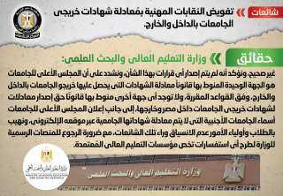 الحكومة تنفى تفويض النقابات المهنية بمُعادلة شهادات خريجى الجامعات