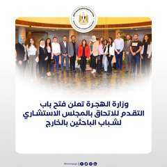 الهجرة تعلن فتح باب التقدم للاتحاق بالمجلس الاستشاري لشباب الباحثين المصريين بالخارج