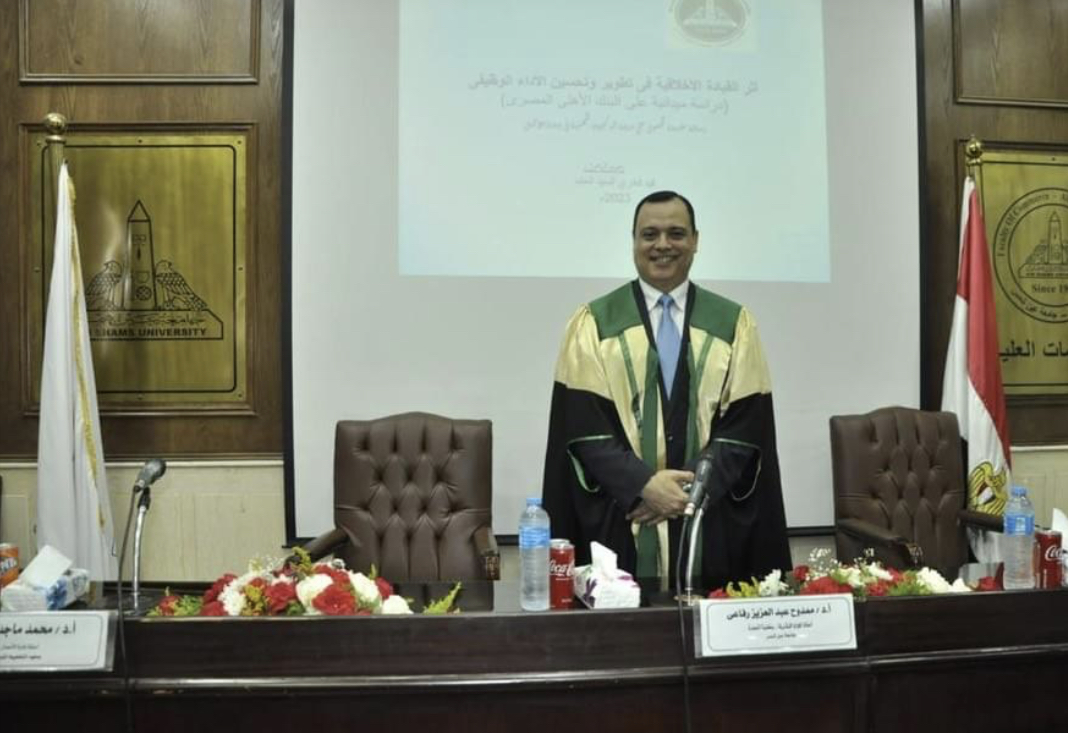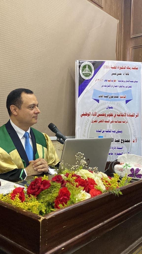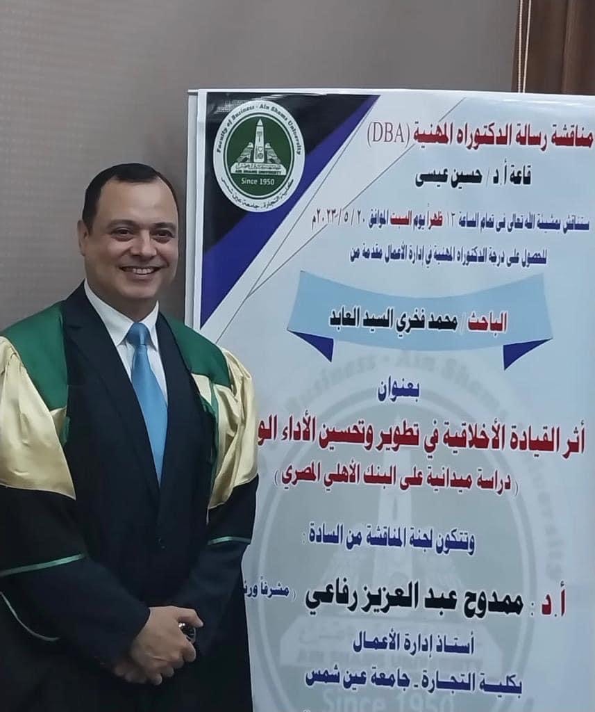 يتقدم الاعلامي فوزي بدوي بخالص التهاني والتبريكات لسيادة اللواء اركان حرب محمد العابد الملحق العسكري الاسبق لجمهورية مصر العربيه بالمملكة العربية السعودية وذلك لمناقشته وحصول سيادته على درجة الدكتوراه من كلية التجارة بجامعة عين شمس بعنوان أثر القيادة الأخلاقية في تطوير واحسين الأداء الوظيفي "دراسة ميدانية على البنك الأهلي المصري "