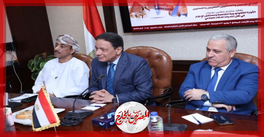 عقد المنتدى الإعلامي المصري العماني، بمقر المجلس الأعلى لتنظيم الإعلام بمبني ماسبيرو، تحت عنوان (الثورة التكنولوجية الخامسة ومستقبل الإعلام في ظل تحديات الذكاء الاصطناعي)، والذي أقيم تحت رعاية الكاتب الصحفي كرم جبر، رئيس المجلس الأعلى لتنظيم الإعلام، والمهندس عبدالصادق الشوربجي رئيس الهيئة الوطنية للصحافة، والسفير عبدالله بن ناصر الرحبي، سفير سلطنة عمان لدى مصر ومندوبها الدائم لدى جامعة الدول العربية.