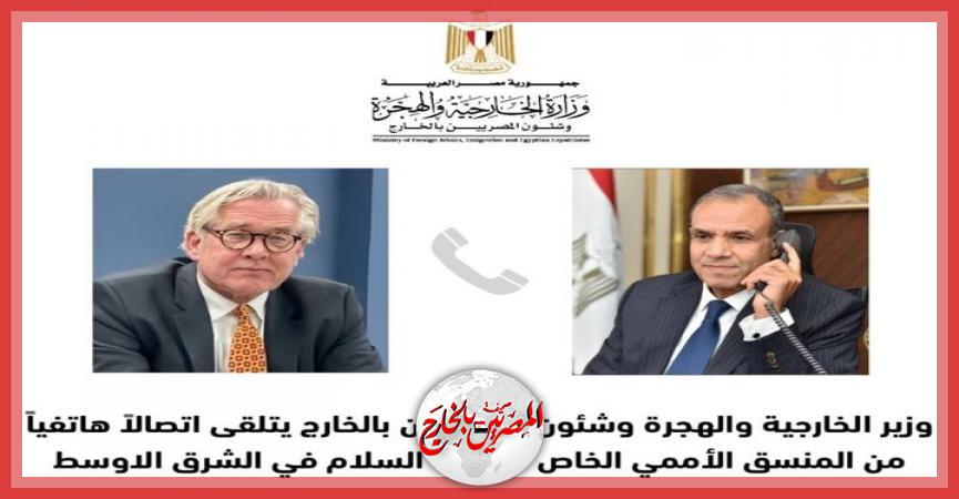وزير الخارجية والهجرة يتلقى إتصالاً من المنسق الأممي الخاص لعملية السلام في الشرق الأوسط